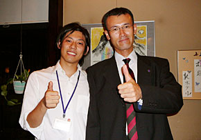 | ▲伊藤久雄花巻稲門会会長(右)と、林正文花巻稲門会幹事長(左) |