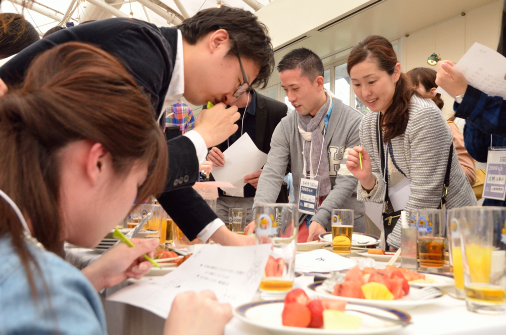 メイン企画は謎解きゲーム。ゲーム会社勤務の幹事による力作です。出身地域ごとのチームに分かれ、複数のクイズからキーワードを解明していきます。幹事たちのスリルある演出に、プレーヤーの表情は真剣そのもの。ゲームで力を合わせることで、世代を超えた交流も生まれました。