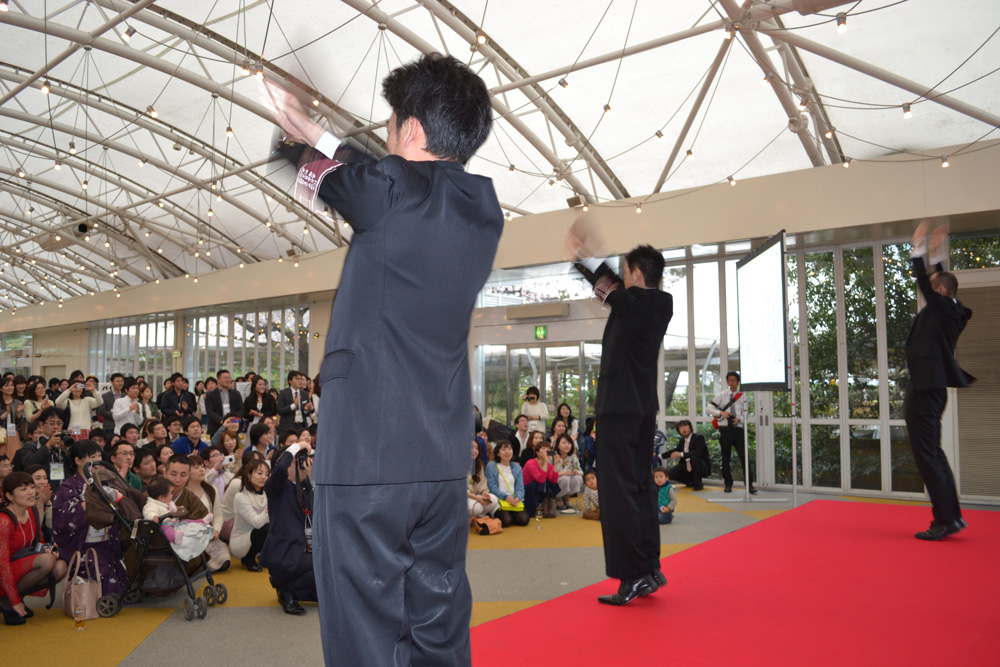 最後はおなじみの校歌・応援歌の斉唱。ステージの上では、各年次の応援部OBが迫力ある演舞を披露します。全員で腕を高らかに振り上げて歌うエネルギーは、若手年次稲門会ならではの迫力。学生時代のような空気に包まれます。次なる大イベント・稲門祭の告知にワクワクしたまま、一同は2次会会場へ。大盛り上がりの一日となりました。