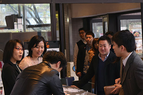 花見会が開催された4月2日(土)は、大学の入学式が行われた日でもありました。入学式を終えた新入生たちを横目に、若手校友たちが懐かしの学食(大隈ガーデンハウス)へと集まり始めました。