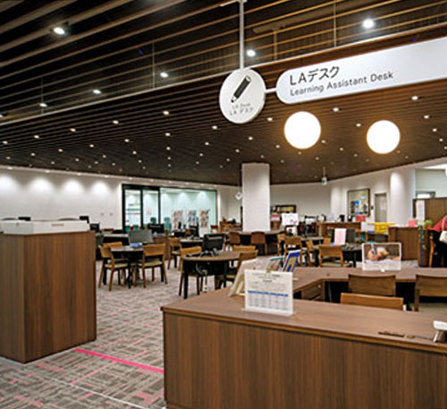 LAデスク。LAは大学院生が担当。学部生に対し、資料の探し方やリポートの作成方法についてアドバイスする