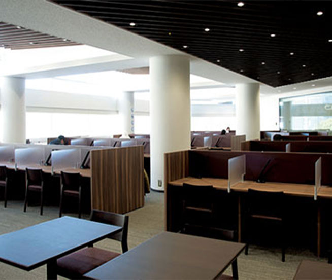 中央図書館3階のLC(ラーニング・コモンズ)は、個人の学習のために設計されている。「ブラウジング(コモンズ3)」は、心地よい環境で読書をしながら知識を得られるエリアで、雑誌、新聞、文庫本などの書架の周囲にリラックスできるソファが設置されている。バックナンバー書庫も隣接しており、過去の膨大な雑誌・新聞を探しにいくことも可能だ。「ワーク(コモンズ4)」には、仕切りのついた机が設置され、個人作業に集中することができる。「Quiet Area」や「Silent Area」と違い、会話は可能で、多少の雑音があったほうが集中できるという学生の声に応じて設定された。