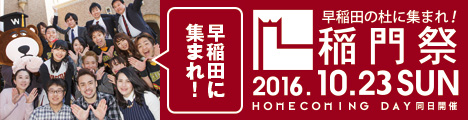 現在、2016稲門祭バナーをご掲載頂いているページです。ご支援ありがとうございます。