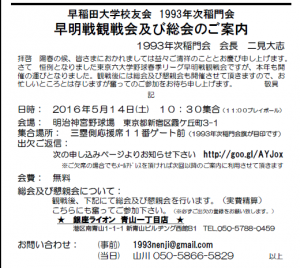 1993年次稲門会(平成5年卒):5/14(土) 東京六大学野球観戦&総会&懇親会