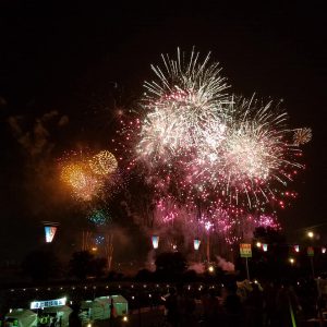 当日は、ファミリーなど含め15人が参加、有料席でゆったり座り、夜空に打ち上げられる花火の数々を振動とともに堪能、荒川挟んで同時開催の戸田橋花火大会とのコラボも楽しみました。