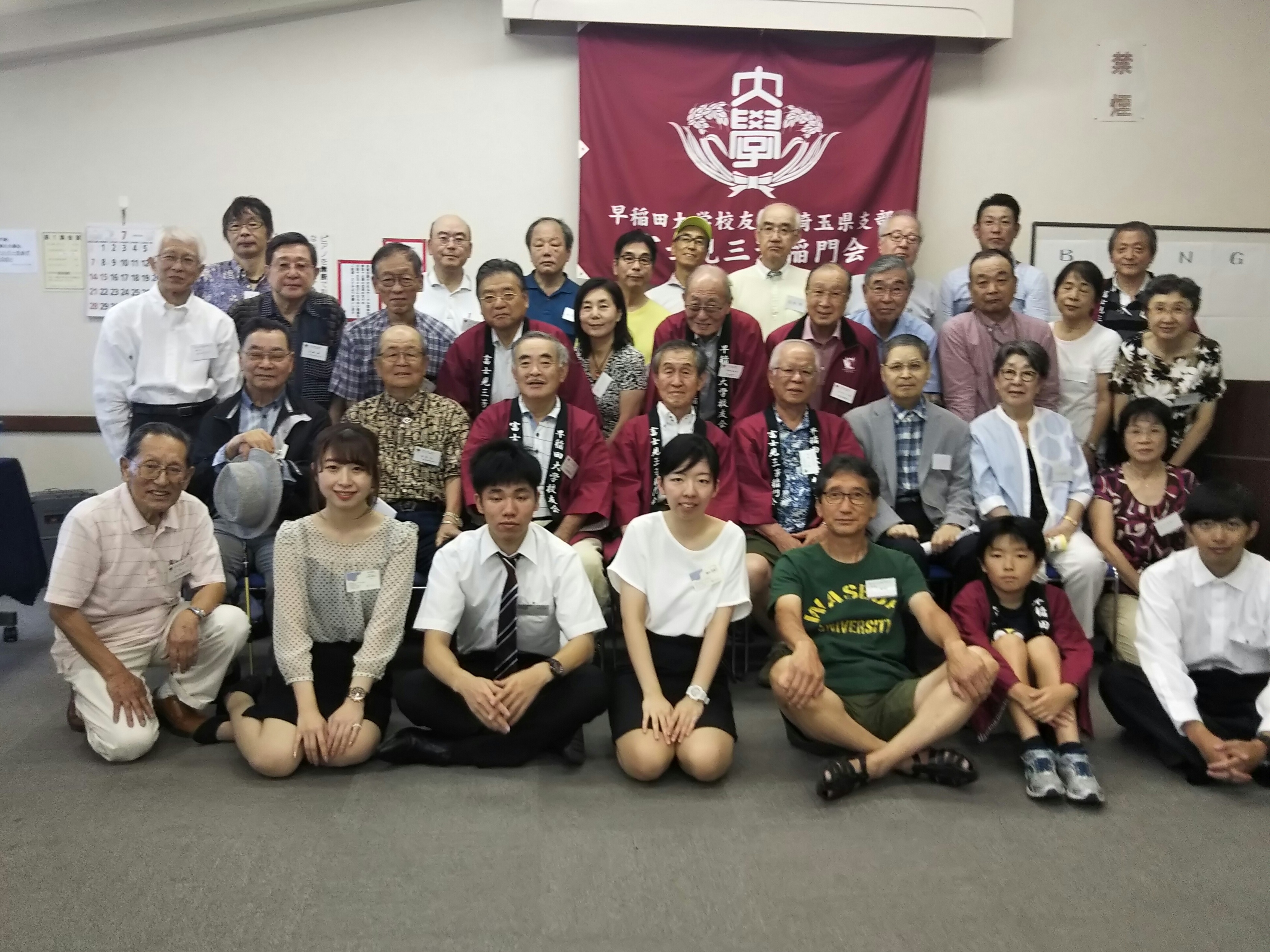 2019年7月28日、恒例の暑気払いを富士見市のみずほ台コミュニティセンターの集会室3室を借りて開きました。会員拡大のポスティングを見て参加された3人や現役学生など30数人が参加、和気あいあいの3時間を過ごしました。今年は初めて「ビンゴゲーム」を実施、会員が各自、1品以上の賞品を持ち寄り、早い者勝ちでビンゴになった人から良い品を持ち帰る方式で大変盛り上がりました。最後には恒例の「都の西北」と『紺碧の空』を大声で合唱してお開きとなりました。