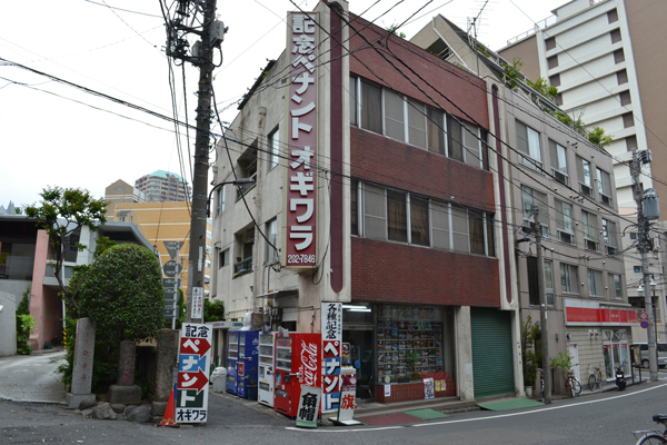 左奥から、医療器具卸のイシバシ、珍味、カレーのフジ、神崎洋服店。右手前にはトンカツのフクちゃん。全てがこの画角に揃っていた。今はイシバシさんが大幅に拡張。
