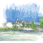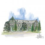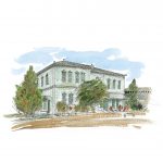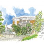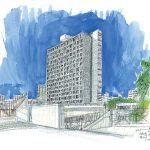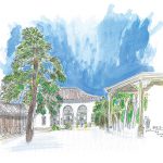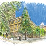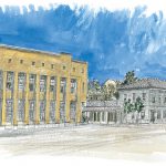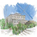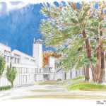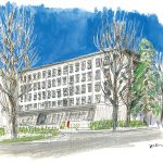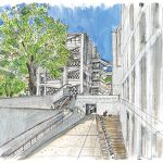 村野藤吾設計、ピロティが印象的な丘の上の学舎