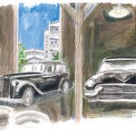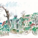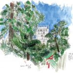 多くの来客の談笑に包まれた、淡い緑青色の洋館
