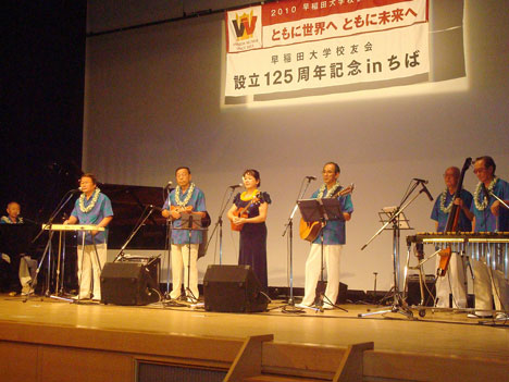 第三部は校友音楽祭で、「早大ニューオルリンズジャズクラブOBバンドドランカーズ」「オルケスタ・デ・タンゴ・ワセダ」「ナレオシックスアイランズ/早稲田大学ハワイ民族舞踏研究会」の音楽と舞踏を楽しんだ。