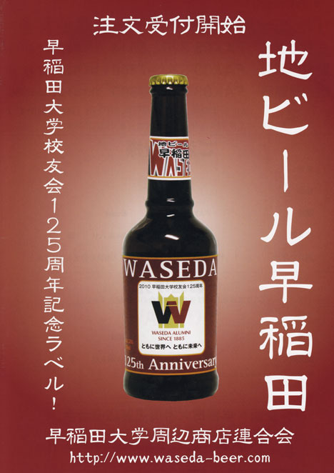 早稲田大学校友会設立125周年を記念し、特別ラベルの「地ビール早稲田」が発売されました。