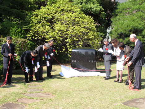 残暑厳しい日ではありましたが、白井克彦校友会長、福田秋秀校友会代表幹事の挨拶に続き、校友会常任幹事も加わって除幕となりました。