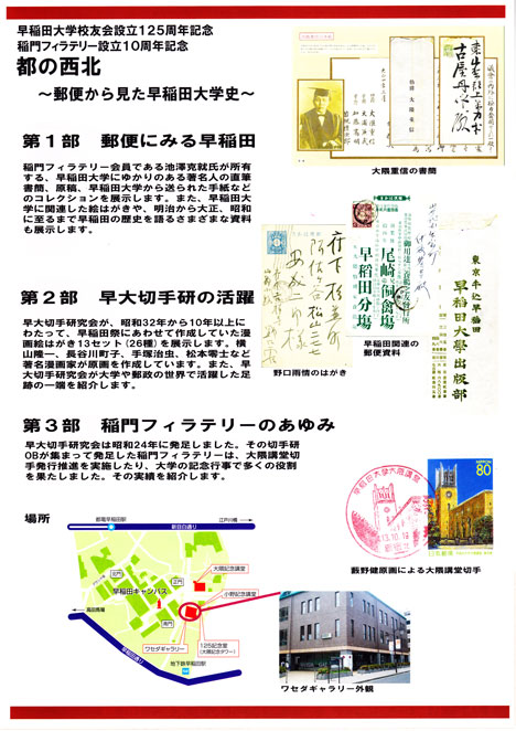 大隈重信、高田早苗、坪内逍遙、相馬御風、會津八一、野口雨情など、ゆかりの人物の書簡から、早稲田の歴史が見えてくる…。