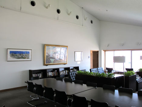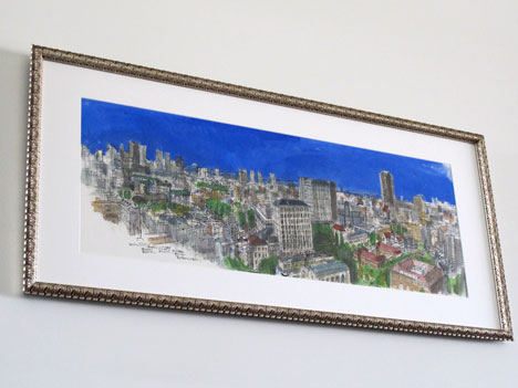 「早稲田2011」は校友サロンに飾られ、一般公開は2011年5月12日から。額装した原画をお楽しみいただけるほか、早稲田キャンパスを見渡す窓辺には複製をディスプレーしている。描き始めてからの数年間に、いくつかの建物が加わり、そして消えていったという。校友サロンからの眺めもまた、「集り散じて人は変れど」のようだ。