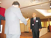▲ 秋田県支部のみなさん。卓球部は3、4年に1度の割合で、秋田で強化合宿を実施。在住の卓球部OBが、現役を力強くサポート。 |