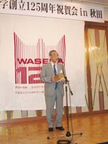 秋田県支部では、県土が広いことから125フェスティバルを県北・県央・県南の3ヶ所で、学術・スポーツ・文化と分野の異なるなるイベントを企画。その第1弾として「秋田わか杉国体」の卓球競技が行われる鹿角市で、秋田県国体強化チームと早稲田大学卓球部による卓球教室を開催、同市近隣の小・中・高生ら約160人が参加しました。