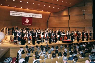 、すがはらやすのり氏のディナーショー・福引抽選会・応援部による応援歌・校歌で締めくくった。特筆すべきはすがはらやすのり氏のリードで歌った校歌を応援部のリードでもう一度歌えたことだろう。職域を含む30稲門会、来賓含め500名に近い参加者で盛況であった。