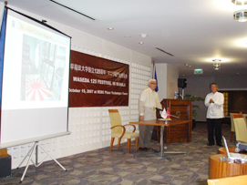 母校から校友会福田常任幹事、フィリピン在住の会員・関係者合わせて約50名が参加。マニラ稲門会荒木会長自ら撮影、編集したスライドショーとフィリピン人歴史研究家で画家のダニエル・ディソン氏の講演を通して、フィリピンは第二次世界大戦の激戦地であった事、そして稲門先輩を始め、多数の尊い命が犠牲になったという事実を紹介。