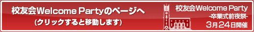 卒業式を表す commencement には、「はじまり」というもう一つの意味があります。卒業生一人ひとりの「はじまり」を祝し、同時に「ようこそ校友会へ」という気持ちを込めて、毎年卒業式の前日に、早稲田大学校友会の主催で「校友会Welcome Party」を開催しています。著名校友ゲストからのメッセージや、校友会稲魂賞の表彰、年次委員の紹介などで盛り上がります。