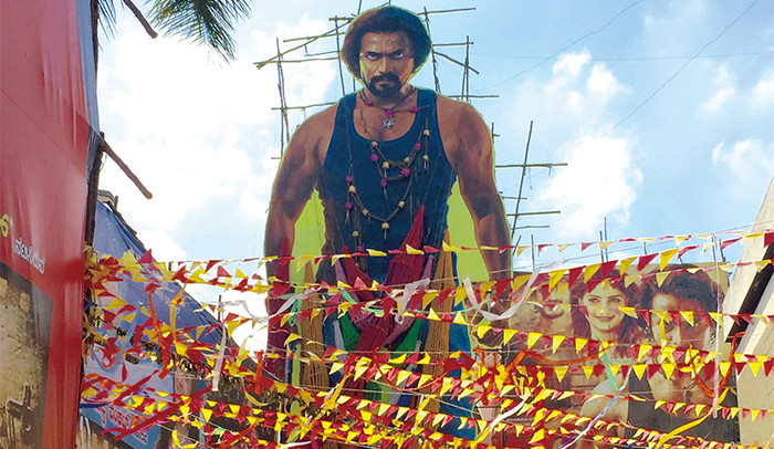 A billboard featuring a cut out of the latest “Sandalwood” star