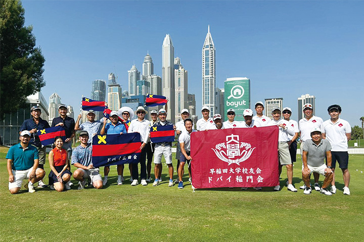 As is typical in many countries, golf is one of the main activities of the Dubai Tomonkai, and since last year, we have been holding the Waseda-Keio “SouKei” golf tournament twice a year. Although the Mita-kai won by a narrow margin last spring, the Tomonkai displayed its prodigious golfing prowess in autumn, winning by a landslide in both gross and net scores. While the UAE is a young country with a mere 51-year history since the founding of the federation and the Dubai Tomonkai is only in its third year of establishment, we hope that our activities, including golf, will increase in Dubai and forge 50 more historic years. Noboru Sekiguchi(Graduated in 1991, School of Political Science and Economics)