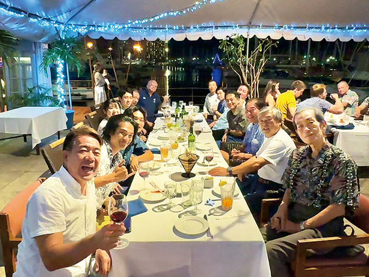 Hawaii Tomonkai was established in 1975 and marks its 50th anniversary in 2025. Currently, there are approximately 50 members, ranging from alums who graduated in 1963 to current students. Most Hawaii Tomonkai members moved to Hawaii of their own will to start a business or other purposes rather than moving to Hawaii as expatriates. Subsequently, the average number of residence years among the members is high, which is a characteristic of the Hawaii Tomonkai. We participate in the Tokyo Six University League Golf Tournament, which has been held for over 40 years, and collaborate with the Hawaii Mita-kai (Keio Alumni Association) and alumni associations of other universities. Many other events are unique to Hawaii, such as yacht test ride events and watching the Honolulu Marathons.