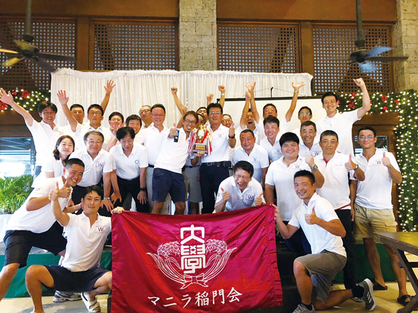 Thirty-seven years have passed since I graduated from Waseda. When I was a student, I rarely went to university, and used to spend time going skiing and going out at night. Therefore, I was not at all interested in alumni associations. Since 2018, I have been quite busy preparing to set up a joint venture with a local company in Manila. However, I began to feel frustrated as it was taking a lot of time, as I had expected. It was then when I heard that the team Waseda was having a hard time winning the Waseda-Keio golf competitions. As a golf lover, I suddenly decided to become a member of the Manila Tomonkai. I participated in Tomonkai golf competitions, preparing a new uniform, two Waseda-Keio golf competitions (we won twice in a row), and parties, and I am enjoying the Tomonkai as if I were making up for the lost time with Waseda. Thanks to the Tomonkai, I am not frustrated any more, and my joint venture is successfully developing. Many of the members of the Manila Tomonkai are nice people, and the best thing about it is that it provides opportunities for us to get together quite easily. Hiroyasu Kato (Graduated in 1982, School of Social Sciences)