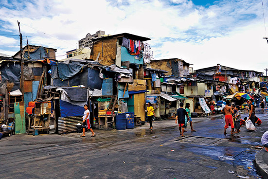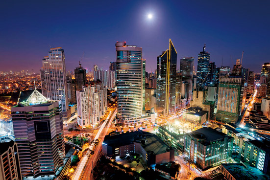 The night view of Makati City, the financial and economic center. A slum area. The gap between rich and poor is one of the social problems.