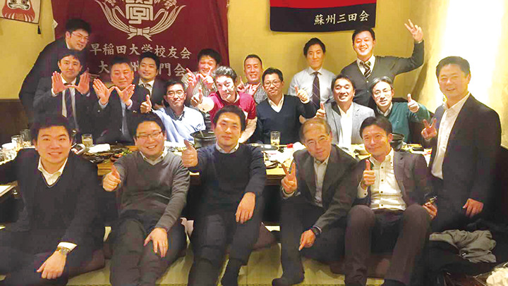 The Suzhou Tomonkai was established in March 2017. Under the leadership of the first Chairperson Yuji Matsuoka and the second Chairperson Yoshitaka Ishii , about 50 members of all ages and both genders have been deepening friendship regardless of nationality, generation, or occupation. The members include expatriates of Japanese companies (there are about 1,800 Japanese companies in Suzhou) and Chinese nationals including Suzhounese who have experienced studying at Waseda (many graduates of Suzhou High School have come to Waseda to study).