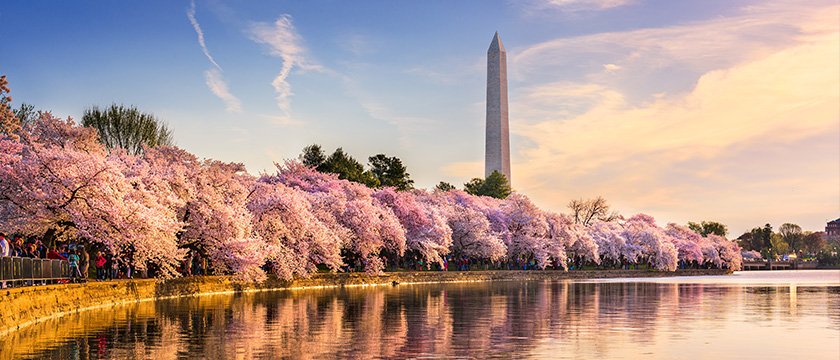 Tidal Basin, a place famous for the cherry blossoms. The Washington Memorial in the distance.