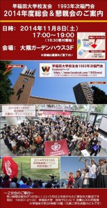 1993年次稲門会 11/8(土)2014年度総会及び懇親会開催予定