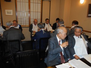 それぞれに飲んだり、食べたり、話したり、笑ったりであっという間に時間は過ぎ、通常は1番しか歌わない校歌を板橋洋一(52政経)氏のリードで3番まで斉唱して午後8時過ぎに散会。