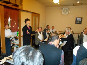 12月15日(月)「みやだい倶楽部」にて午後6時より開催。島岡会長のあいさつと乾杯、初参加の田嶋光三(33理工)、小山良弘(教育1年)両氏の自己紹介、越智幹事長から1月2日箱根駅伝の応援要請などを行った。