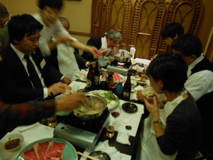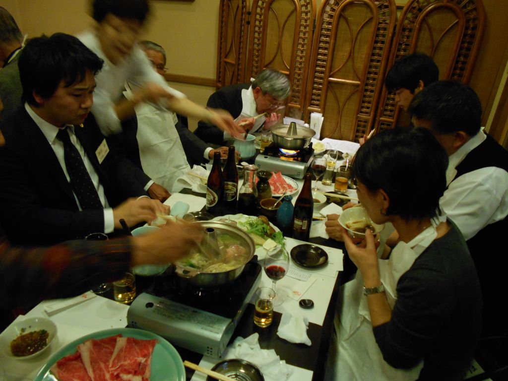 忘年会ということで、今年93歳になられた千原正(25専工)氏をはじめ35名の多数の方が参加し、飲み放題のお酒とみやだい倶楽部の食べ放題のしゃぶしゃぶに舌鼓を打ちながら、懇談と綱川幹事長代行(48社学)の名司会で会は進行した。