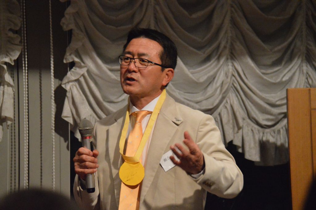 恩師中村清監督に心酔したいきさつやライバルである宗兄弟とのレースにおける駆け引きなどの体験談が語られた。時々出席者に問いかけるなど、軽妙でユーモアを交えた楽しい講演だった。最後に紙で作られた金メダルを首にかけ、「オリンピックで金メダルは取れなかったがこれまでの頑張りに対し、当時2歳の息子がこれを贈ってくれた。本当に嬉しかった」と勝負師の顔からよきパパの顔になっていたのが印象的だった。