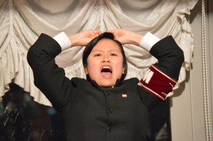 恒例の福引抽選会も行われ、和やかな雰囲気のなか、締めは女性初の応援部リーダー・木暮美季さんのリードで応援歌『紺碧の空』校歌『都の西北』を斉唱し、宴の幕を閉じた。