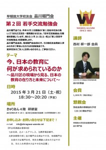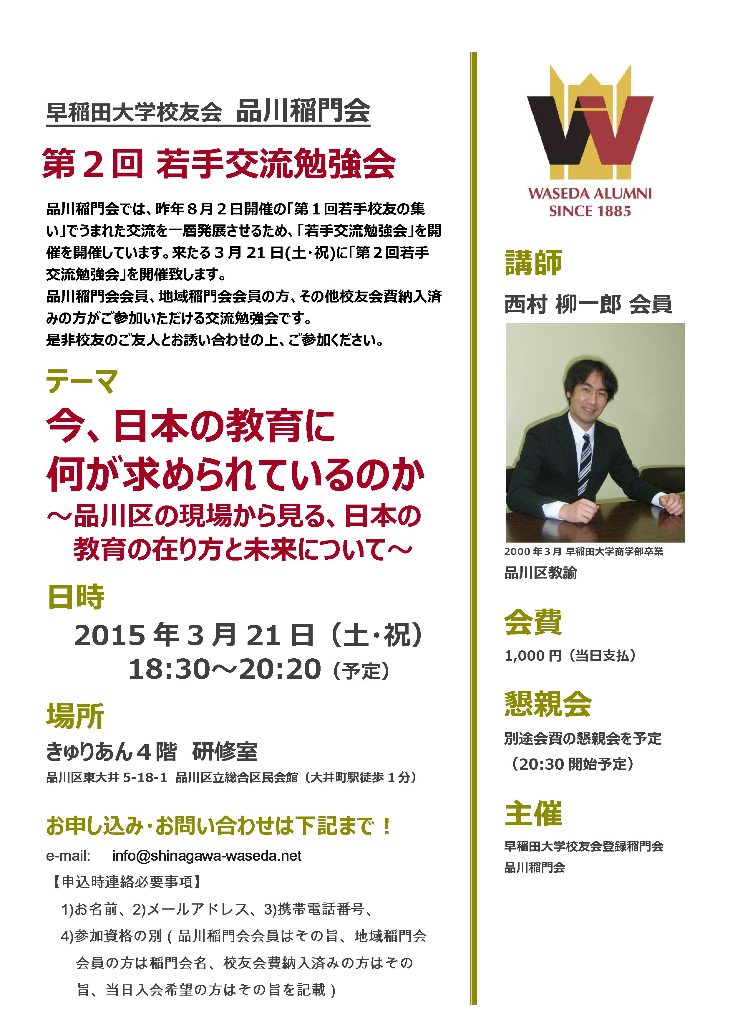 品川稲門会: 3/21(土・祝) 第2回若手交流勉強会開催のご案内