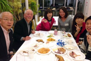 そして今回が3回目の会合となったが、今まで参加していなかった若手校友3名も新たに加わり、若手校友9名、現役学生4名に役員8名と横山商学部教授も参加して、若手の幹事が用意したお酒を飲み、料理を食べながら和やかな雰囲気のなかで懇談を行い、合間には初めて参加した人の自己紹介、4チームに分かれて幹事が用意したクイズで勝負を競ったりとにぎやかに会は進行し、おおいに交流を深めることができた。