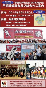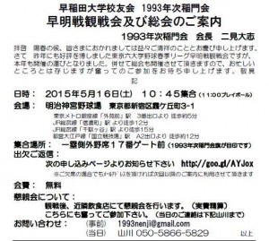 1993年次稲門会(平成5年卒):5/16(土)「東京六大学野球 早稲田vs明治1回戦観戦会 及び 総会」