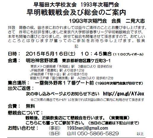 1993年次稲門会サイト:https://www.facebook.com/1993nenji