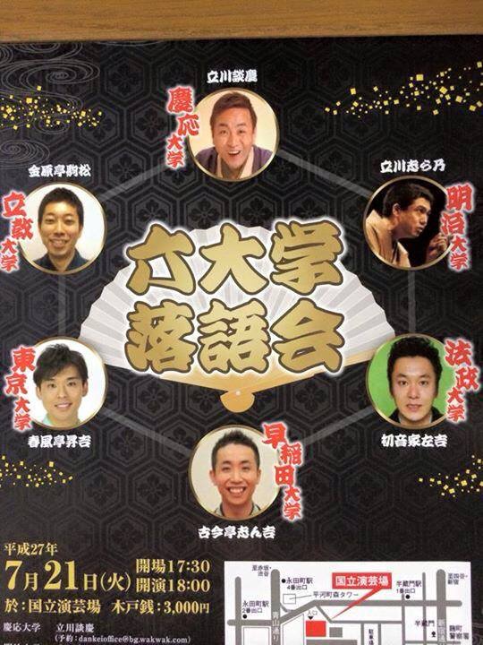 2002年次稲門会は、去る2015年7月21日(火)に国立演芸場で開催された六大学落語会に公式行事として行ってきました。お目当ては、同窓生で現在噺家としてご活躍中の古今亭志ん吉さん(2002年一文卒)。