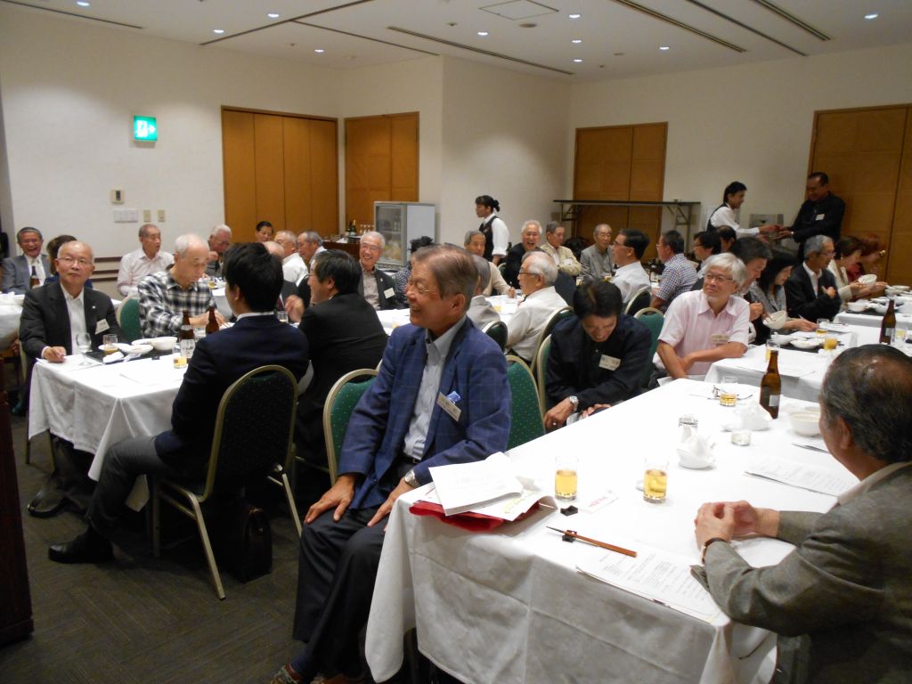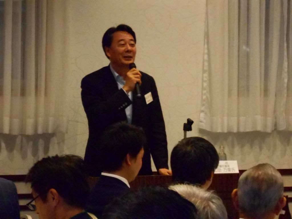 今回は綱川幹事長代行(1973年社学)の紹介で前衆議院議員の海江田万里氏に「戦後70年の日本の歩みとこれから」と題して講演をしていただいた。ゲストも含めて参加者が45名と会場が一杯となる盛況であった。講演では慶應出身の同氏から両校の応援歌に出てくる「王者」と「覇者」の違いについての話から始まり、つい最近に中国を訪問されていたこともあり、中国との関係を中心に過去から現在に至る色々な動きやこれからの展望について、時にはユーモアも交えながら大局的な観点から話をしていただいた。その中で現状不安定な中国経済の動向については経済に強い李克強首相が主導をするようになれば確実に回復するのでは述べられた。また、現時点での最大の関心事である安保法制や消費税の軽減税率などの問題などについても同氏の立場からの考えについて的確な意見を述べられていた。