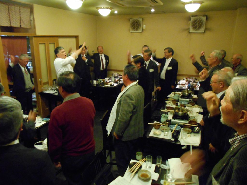 その後も食べ放題、飲み放題で会は盛り上がり、いつ果てるともしれないなか、板橋洋一氏(52政経)の音頭で恒例の校歌を斉唱して午後8時半過ぎに散会。