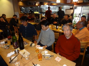 2015年12月19日(土)午後5時から、「日本橋漁港 快海」を借り切って、2015年度54ら会忘年会を開きました。昨年お料理が美味しく、お酒の種類も多く好評だったため、藤井幹事のご助力で、今年も休業日の土曜日に特別貸切り営業をしていただきました。参加者は25名。初参加の54らも徐々に増えてきました。