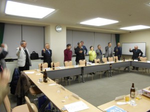 2016年3月14日(月)武蔵小杉ユニオンビルにて午後6時半より開催。島岡会長のあいさつと乾杯に続いて、初参加の今泉孝志(1978年政経)氏の自己紹介、幹事長から報告・連絡などを行った。