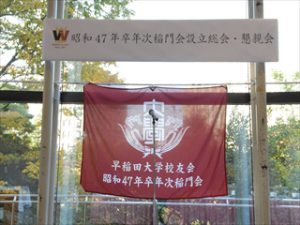 当日にはワンコインで日本酒の飲める1972年次稲門会の模擬店『おおくま亭』も本キャンパスにて開催してしておりますので、お時間ありましたらこちらにもぜひお寄りください。なお詳しくは1972年次稲門会のホームページ(http://1972waseda.com/)をご覧ください。