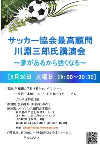 ファイナンス稲門会:9/20(火) サッカー協会最高顧問 川淵三郎氏講演会