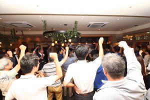 2時間ではとても話し足りないという雰囲気で、早稲田大学校歌を高らかに歌った後、多くのメンバーが2次会にも参加し、夜まで大いに盛り上がりました。