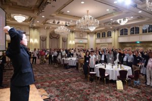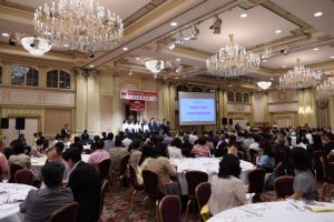 還暦を迎える年になってもなかなか耳従わず、「生涯青春!」と気だけは学生時代のままの54ら軍団。第2回以降オリンピック・イヤーに大々的に集まろうということで、今年が第3回の拡大版総会となりました。2016年7月23日、リーガロイヤルホテルに集まったのは、目標200名を上回る227名。メールとDM、なかよしへの口コミなど、一人でも多くの54らと場を共有したいという地道な努力の成果です。九州や東北などから、このために早稲田の杜を訪れた54らも。ドタキャンがほとんどなかったのも、結束力の強さゆえか。