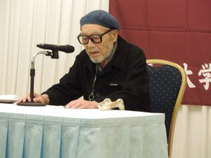 午後3時45分からの講演会では1954年政治経済学部を卒業後にオペラ歌手になられた岡村喬生氏に「ドレミも知らずにオペラ歌手に」という演題で講演をしていただいた。85歳の高齢のため、座られての講演ではあったが、いまだに現役で歌われているだけあって声には張りがあり聞きやすい講演であった。政治経済学部に入ったのは新聞記者になることが目的であったが、たまたまグリークラブに入らないかと誘われ、男声合唱のハーモニーのすばらしさの虜となり、その後NHK合唱団に合格、団員として活動していたときにイタリアオペラの素晴らしさに出会ったのがオペラ歌手になるきっかけであったことなどをユーモアを交えて1時間にわたり話していただいた。